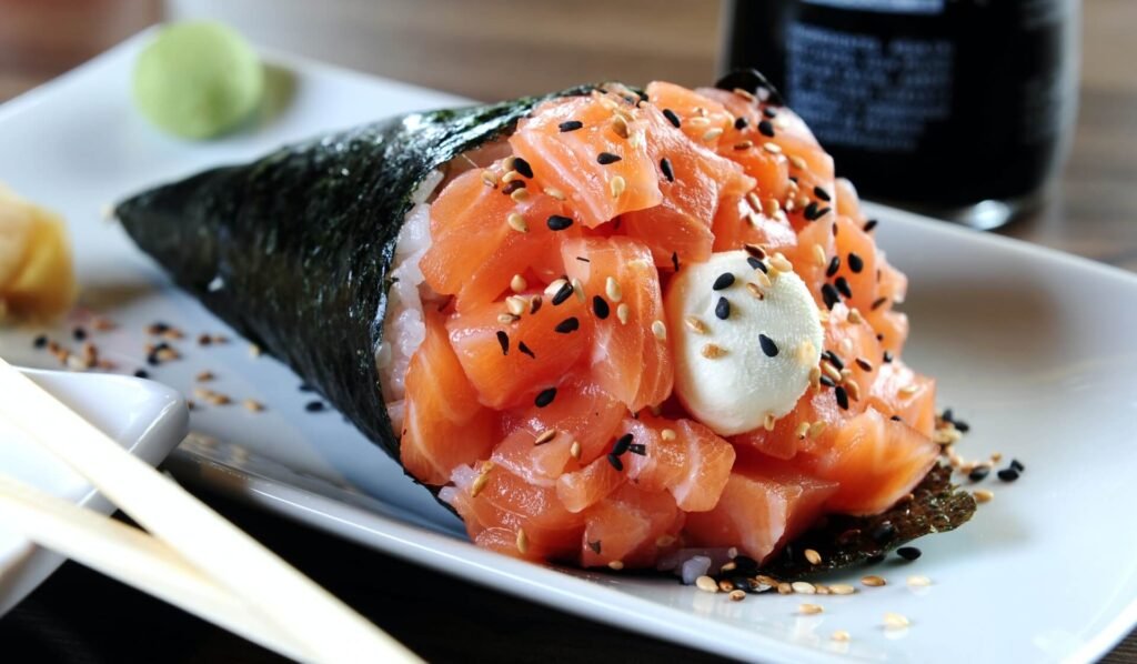 O temaki tradicional foi reinventado no Brasil com a adição de manga, cream cheese e, às vezes, até gergelim torrado. Essa combinação agridoce reflete a criatividade brasileira ao misturar texturas e sabores. A manga traz frescor e dulçor, enquanto o cream cheese adiciona uma cremosidade que contrasta perfeitamente com o arroz temperado e a alga crocante.